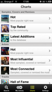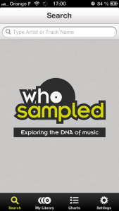 Bon, commençons par le désagréable: Who sampled est en anglais… Mais pas de panique ! On parle ici de musique et ce n’est donc quasiment pas handicapant pour la prise en main.De plus, même en France, les termes employés pour la musique sont souvent des mots anglais. Ensuite, trois onglets principaux permettent de naviguer dans l’application et des pages intuitives. Dommage cépendant, que l’on ne puisse pas poster de samples depuis l’application.