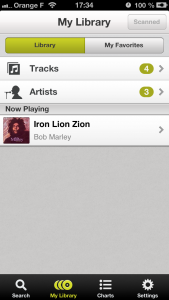 My library : Cet onglet est le plus intéressant de l’application selon moi. Ici, vous scannez votre bibliothèque iTunes (titres présents sur votre iPhone) afin ensuite de pouvoir « enquêter » sur vos titres personnels. Ainsi, vous allez savoir s’ils ont été repris, remixés ou bien inversement si l’artiste s’est inspiré d’un titre plus ancien. Quelques heures de musique vous attendent ici. De plus, les morceaux trouvés et placés en favoris apparaissent eux aussi dans cet onglet. Par ailleurs, quelle que soit votre recherche, une fois accessible, vous pouvez la filtrer et/ou la classer grâce à un menu d’options (plus récente à la plus ancienne et inversement, par ordre alphabétique, …). Très pratique pour les artistes ayant une panoplie de titres conséquente.