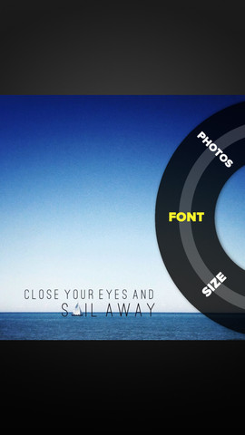Une fois votre photo choisie, une roue apparaître sur le côté, ainsi qu’un texte sur votre image. Pour modifier le texte, il suffit de tapoter deux fois dessus: vous pourrez également en éditer la couleur. Ensuite, il suffit d’utiliser la roue pour changer la police, l’alignement ou encore la taille. Vous pourrez alors sauvegarder votre image, mais aussi la partager en passant par Instagram.