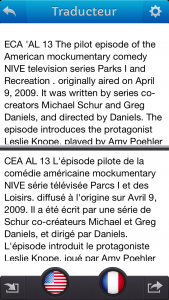 Une fois votre texte édité, corrigé et/ou traduit, il est possible de l’envoyer par mail ou message et/ou le partager sur les réseaux sociaux et DropBox, mais également de l’ouvrir grâce à des applications que vous possédez déjà (Evernote par exemple). A noter qu’il est possible de l’envoyer ou de l’ouvrir en format PDF. La liste de tous vos documents traités se trouve ensuite sur la page principale.