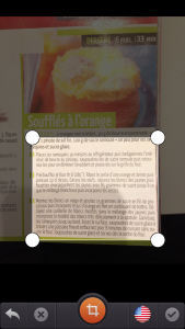 - Une icône orange vous permet de valider votre sélection. Confirmer la nouvelle image, l’application se met alors, à lire le texte afin de l’éditer.