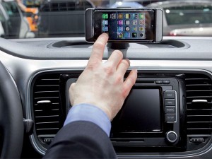 Les données de la voiture, ça ressemble à un gadget alors que ça fait 10 ans que la plupart des voitures intègrent ce genre d’ordinateurs de bord. Par contre un espace intégré au tableau de bord pour pouvoir, en posant simplement son iPhone sur un socle, sans avoir à brancher deux câbles qui font chier, accéder à son iPod, recharger son joujou ou utiliser son logiciel de navigation, je dis… « enfin »!