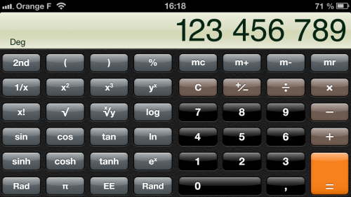 Tout d’abord, sachez qu’en utilisant l’application en mode paysage, de nouvelles fonctions apparaissent et votre calculatrice n’a rien à envier aux autres calculatrices scientifiques, comme vous pouvez le voir ci-dessous.
