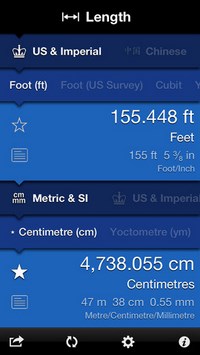 Un outil de conversion unique, puissant et facile à utiliser convertir de nombreuses unités standards et non-standards de mesure et de change. Des centaines d’unités non standards, telles que la longueur d’une cellule sanguine, la hauteur de l’Empire State Building, la masse de Saturne, ou encore la vitesse d’Usain Bolt sont disponibles, la navigation est très simple (glissement de doigt pour accéder rapidement à une large gamme d’unités et catégories), et les unités sont catégorisées pour un accès rapide : Metric & SI, US & Imperial, géographie, nature, objets quotidiens, etc… Vous retrouverez également les différents types de conversion banals, tels que la longueur, la masse, l’aire, la devise (160 monnaies, mises à jour toutes les 3 heures), l’énergie, la puissance, la pression, le volume, la température, le temps, et la vitesse. Très bien noté 5/5 pour 12 avis ! Télécharger gratuitement Convertible : Unit Converter with Currency.