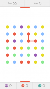 Le but de Dots n’est pourtant pas compliqué. En effet, vous devez relier des points d’une même couleur dans un tableau représentant, au total, 36 points. Il y a juste deux règles à respecter: votre « slide » ne doit être uniquement horizontal ou vertical et vous avez une minute. Ensuite, faites ce que vous voulez, des carrés, des rectangles (c’est ce qui vous fait gagner un maximum de points),…