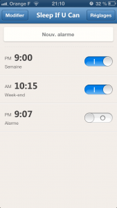 Après avoir fait un aperçu d’un calendrier il y a quelques jours, c’est un réveil que l’on passe dans nos viseurs aujourd’hui. Après cela, vous n’aurez plus d’excuse : un calendrier pour vos rendez-vous et un réveil pour éviter d’arriver sans se brosser les dents au travail. En effet, je pense que nous sommes beaucoup à utiliser le réveil issu de iOS qui fonctionne certes très bien (encore mieux depuis que l’on peut mettre ses propres musiques), mais elle ne vous empêchera pas d’arriver en retard au travail… Car vous le savez, repoussez un coup son réveil de 9 min, puis encore de 9 min et on est dans la panade. Aujourd’hui est à marquer d’une pierre blanche pour vous et votre patron (sic), car, Sleep if you can porte bien son nom. Explications ci-dessous.