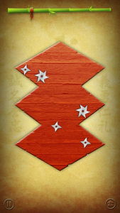 Le but du jeu est simple à comprendre: un espace de jeu représentant une forme, contient des shurikens en mouvements. Vous devez réduire cet espace de jeu le plus petit possible sans séparer les étoiles entre elles, sans les toucher, en un minimum de coup et le plus rapidement possible. Le tout en « slidant » avec votre doigt. Cela est très simple au début et il ne sera pas difficile d’obtenir les 3 étoiles représentant la meilleure note ainsi qu’un bon score. Mais tout ceci se complique au fil des niveaux. En effet, arriveront très vite, des parois métalliques sur les bords de l’espace de jeux limitant ainsi, les possibilités du joueur.
