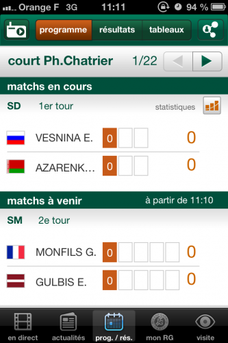 Appli très complète, on peut voir le match en direct aussi, sélectionner nos 5 joueurs favori et on reçoit une notification quand le joueur rentre sur le cour et gagne ou perd son match, bref, je la conseille !
