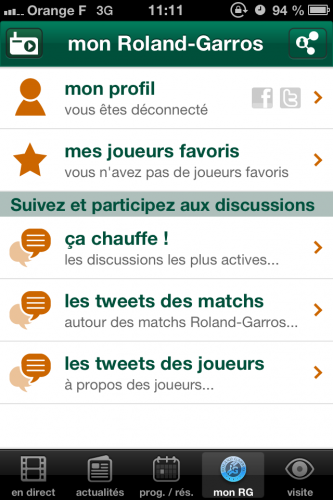 Mon RG (ou comment participer à l’information) : Enfin, les développeurs ne nous ont pas oubliés en proposant aux utilisateurs de partager toutes les informations importantes sur Twitter et Facebook afin de facilement alerter ses amis d’un magnifique Ace par exemple. Cette catégorie permettra également de personnaliser son flux d’informations en fonction de ses joueurs favoris.