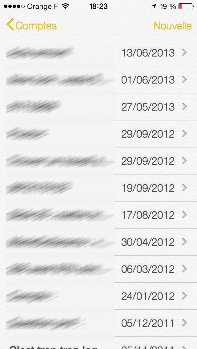 Puis, les différentes notes sont listées comme dans les OS précédents. Les boutons supérieurs reprennent la couleur jaune du logo. Finalement, on note très peu de changements dans le fonctionnement et les fonctions proposées de l’application.
