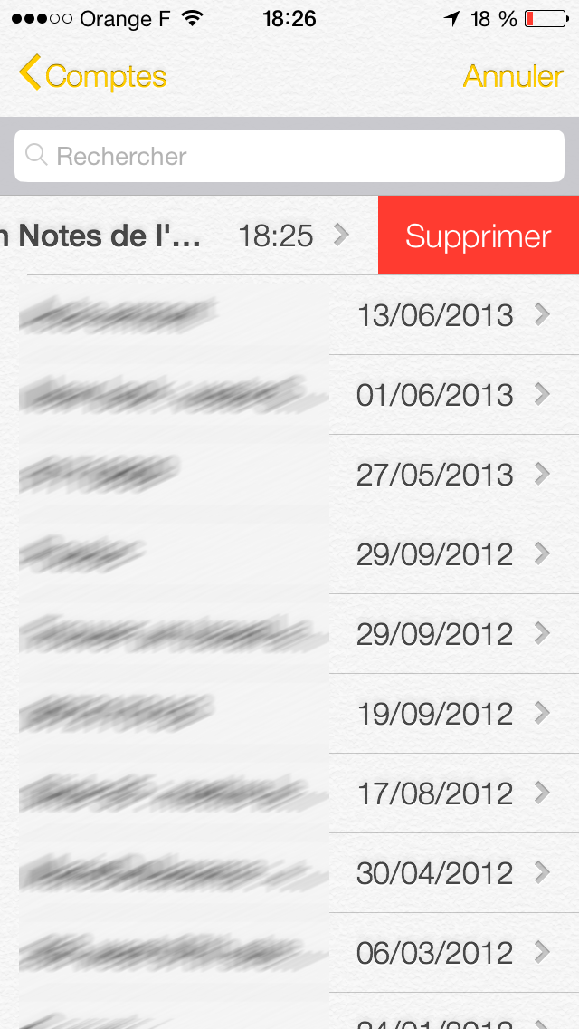 La suppression de la note s’effectue de la même manière avec un slide vers la droite. Le bouton « Supprimer » est aussi légèrement modernisé.