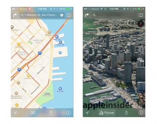 Au niveau des nouveautés de moins grosse envergure, vous retrouverez une icône de localisation au nouveau design, un accès rapide au mode FlyOver, ainsi qu’un nouveau bouton de partage (pour partager sa position par AirDrop, Message, Mails, Twitter et Facebook).