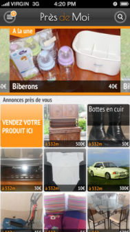 Près de moi utilise la géolocalisation pour vous permettre d’acheter toutes sortes d’objets aux environs de votre position géographique. L’application vous met en contact direct avec le vendeur, et permet ainsi de faire de bonnes affaires sur des produits qui vous sont réellement utiles ! Télécharger gratuitement Près de Moi.