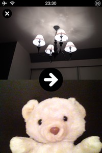 Aucune fioriture n’est à déplorer dans l’interface de l’application : tout va à l’essentiel et rend sa prise en main immédiate. Suite à l’inscription nécessaire, et la possible jonction avec Facebook et Twitter, vous pourrez prendre vos premiers clichés. Vous verrez alors l’écran coupé en deux. Dans un premier lieu, vous prendrez un cliché avec l’appareil photo du dos de l’iPhone. Puis, automatiquement, l’objectif passera à l’appareil photo frontal. Le principe étant a priori de prendre les deux clichés sans avoir bougé, pour montrer les deux côtés du rideau.