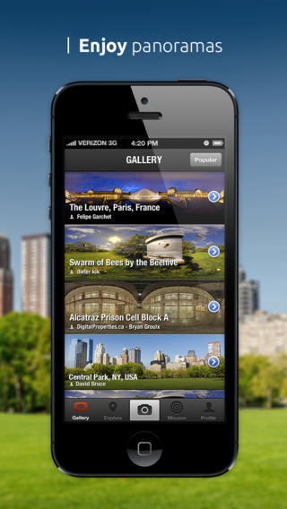 Application qui vous permettra de visionner des milliers de panoramas du monde entier. Elle vous permettra également d’enregistrer vos propres créations photographiques et de les partager au monde entier. Faite le tour du monde sur votre iPhone avec des photographies en mode panoramique plus belles les unes que les autres. Télécharger gratuitement Panorama 360 Cities.