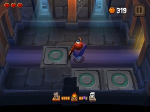 Bien qu’entièrement en anglais, ce petit jeu très agréable est vraiment facile à utiliser. Vous incarnez le personnage principal à savoir un roi et vous venez de vous faire piquer votre pantalon par un méchant petit monstre. Le jeu commence immédiatement après le choix de la difficulté (casual est vraiment facile…) et vous parcourez les couloirs d’un château :