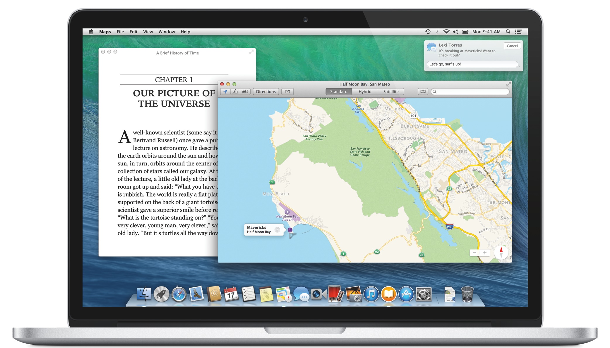 Avec le slogan « votre Mac est tout-puissant » Apple tape fort et propose gratuitement son nouveau système d’exploitation pour Mac. Mavericks, qui a pour vocation d’être plus proche d’iOS, suit la ligne directrice d’Apple sans toutefois proposer de grandes nouveautés puisque celles-ci ont déjà été abordées lors de la dernière WWDC. Qualifié de « révolution tarifaire » par Apple, en prenant en exemple le prix de windows 8 Pro, Mavericks propose de petites nouveautés depuis la version bêta : il gérerait mieux l’allocation de mémoire partagée avec le circuit graphique intégré. Entendez par là que les données géométriques et colorimétriques seront stockées dans la mémoire en vue d’être utilisées ou traitées par le processeur graphique et seront mieux gérées, ce qui réduirait les risques d’overflow.