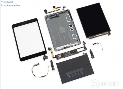 Après l’iPad Air (article à lire ici), c’est l’iPad Mini Retina qui est passé entre les mains de iFixit. Ces derniers ont ainsi la fâcheuse habitude de décortiquer les iDevices juste après leur commercialisation. Comme à l’accoutumée, l’ardoise a complètement été démontée pour en apprendre un peu plus sur ses composants. Tout d’abord, les mêmes composants se retrouvent dans l’iPhone 5S et l’iPad Air, dont la puce A7. Remarquons qu’elle est cadencée à 1,29Ghz contre 1,4Ghz pour l’iPad Air.