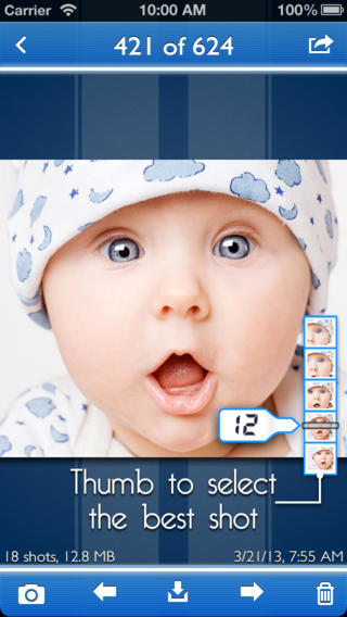 Cette app photo a pour principale fonction de pouvoir rester appuyé sur le bouton de shoot et ensuite sélectionner la meilleure image prise afin de ne rater aucun objet ou personne en mouvement. Noté 4,5/5 pour 21 avis. Télécharger gratuitement SnappyCam Pro.