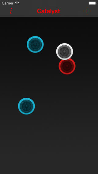 Application musicale originale dans laquelle vous devrez cliquer sur « + » pour ajouter un disque. Cliquez sur le disque une fois pour passer en mode enregistrement puis faites un son et cliquez à nouveau sur le même disque. Ensuite vous le faites rebondir et le son se joue à chaque rebond. Pour tout stopper ou effacer tous les disques appuyez sur « Catalyst » ou appuyez longuement sur un disque pour le supprimer. Télécharger gratuitement Catalyst.