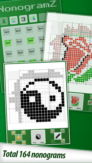 Plus de 160 puzzles en pixelart que vous devrez remplir pour découvrir quel symbole ou dessin s’y cache. Certains niveaux se composent de 5 couleurs et la taille de la grille change avec la difficulté. Noté 4/5 pour 27 avis. Télécharger gratuitement NonogramZ.