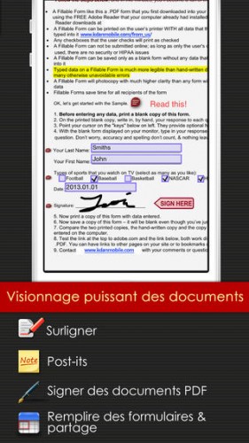 PDF Reader est un outil solide et simple doté d’une technologie de scan et d’un moteur de rendu PDF. Surlignez, annotez, signez et remplissez des formulaires. Noté 4/5 pour 587 avis. Télécharger gratuitement PDF Reader – iPhone Premium Edition.