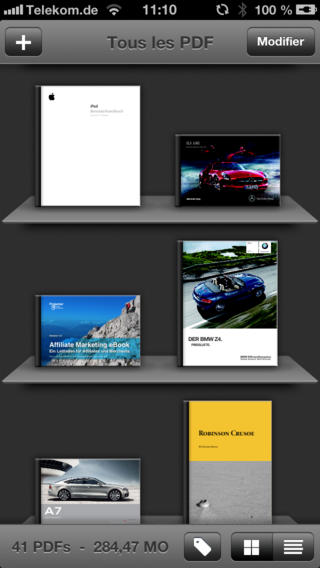 Le symbole [+] indique une Application universelle compatible iPhone et iPad. La langue de l’application est indiquée à coté de son poids.