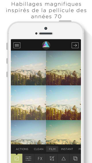 Pour finir la sélection de la journée, une application d’éditions photographiques. Cette dernière comprend des filtres (34 au total), préréglages automatiques, des effets (lumières, cadres, …), un mode de prises de vues intéressant (déclenchement par compte à rebours, automatique, grille, formats différents, exposition, point focal, …). D’autres paramètres sont modifiables bien évidemment. Compatible iPhone, et iPod. Télécharger Faded à 0,89€.