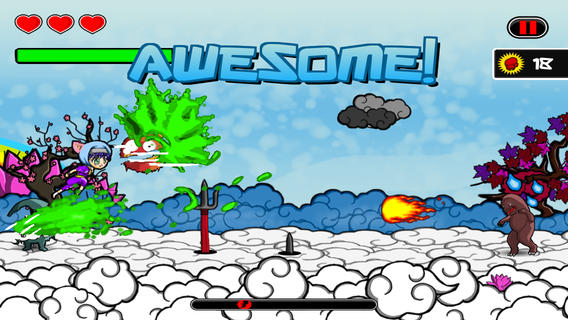 Un bon jeu de running qui se joue principalement avec 3 boutons (dont on peut régler la position) : en bas à droite pour sauter, en bas à gauche pour glisser et passer sous les obstacles, et quand on a tué assez d’ennemis le bouton en haut à gauche pour faire une prise spéciale et détruire plusieurs ennemis d’un coup. On fonce simplement dans un ennemi pour le tuer, si on ne peut pas le tuer un point d’exclamation s’affiche. Télécharger gratuitement Ninja Sprint.