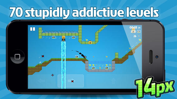 Un petit jeu de plateformes vraiment très réactif et avec tout ce qu’il faut. Cliquez plusieurs fois pour sauter plus haut, sauvez tous vos amis et rejoignez le vortex pour finir chaque niveau. Télécharger gratuitement 14px | Ultra fast-paced platformer.