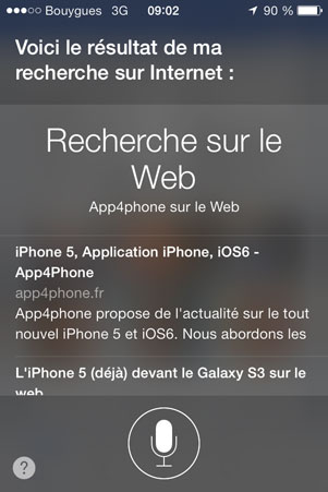 Depuis iOS 7, notre compagnon préféré a la possibilité d’effectuer des recherches sur le web, via Wikipedia, Bing ou encore Twitter. La nouveauté étant qu’il affichera les résultats dans sa propre interface au lieu de vous rediriger vers une application tierce telle que safari.